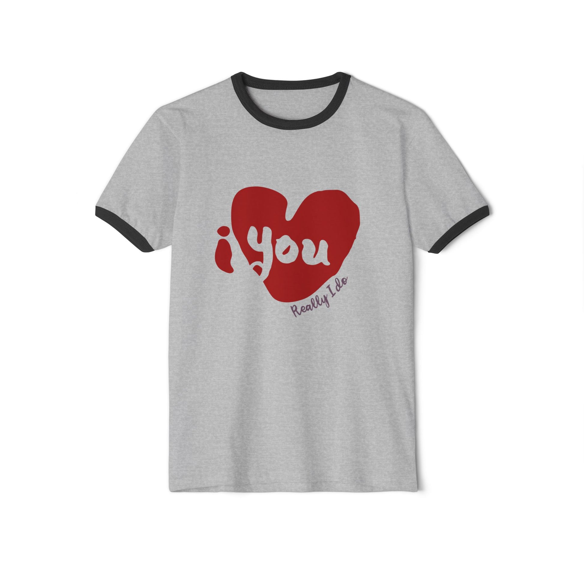 For when you want to wear your heart on your chest but keep it strictly low-key. This vintage-inspired ringer features a punchy, hand-drawn red heart and a "Really I do" tagline that’s more "cool confession" than "cheesy greeting card." With sharp contrast binding for that 70s gym-class-hero vibe, it’s cut from buttery, lightweight combed cotton that feels like a hug you actually want. Whether you're rocking the heathered or solid colorways, it’s the perfect "I’m sweet but I have an edge" staple for cozy mornings at home, casual coffee dates, or weekend strolls. It settles into your rotation and carries a gentle, honest sentiment without shouting.