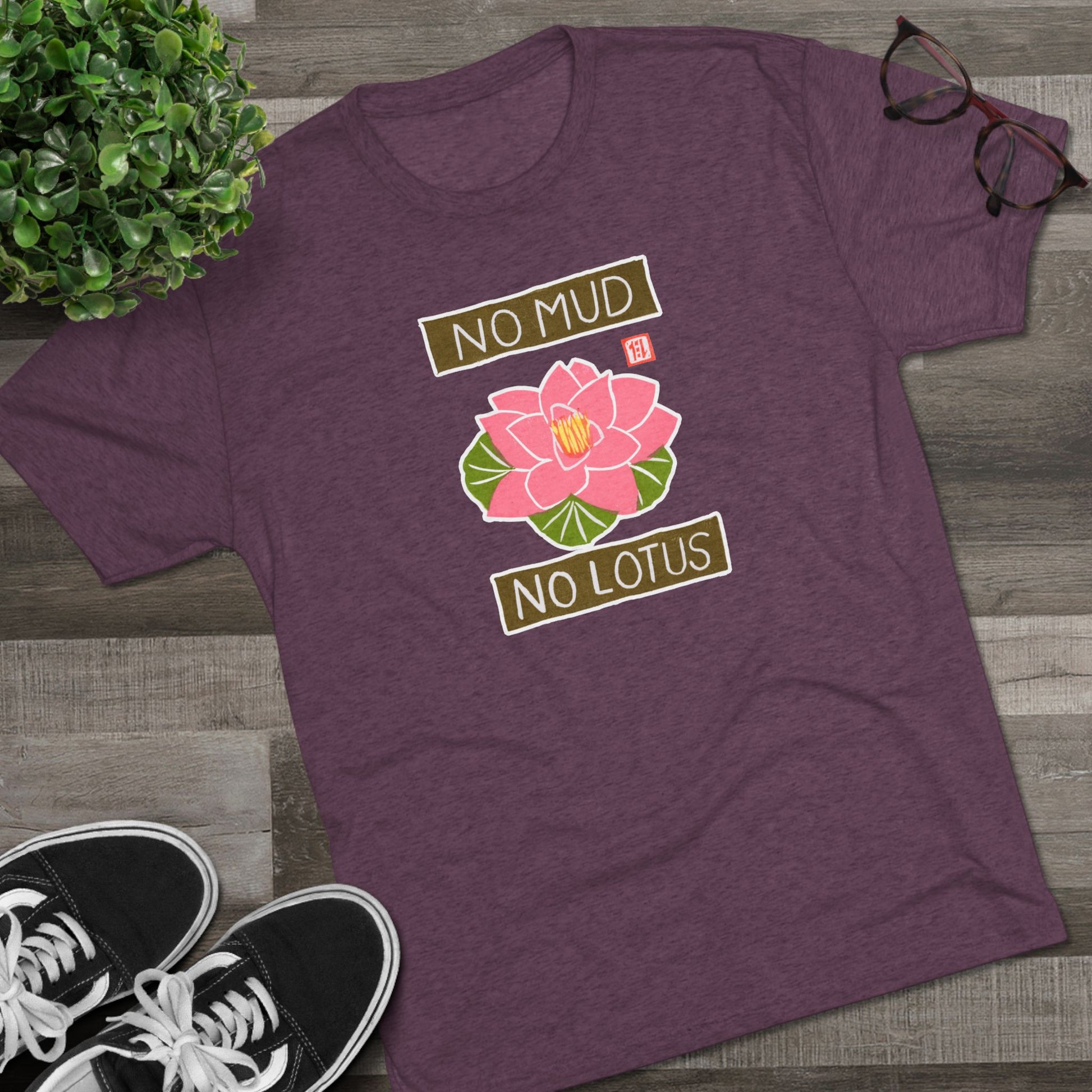 Mindful Yoga Lotus Flower Graphic Tee | "No Mud No Lotus" Small Good Things | Premium Tri-Blend Tee
